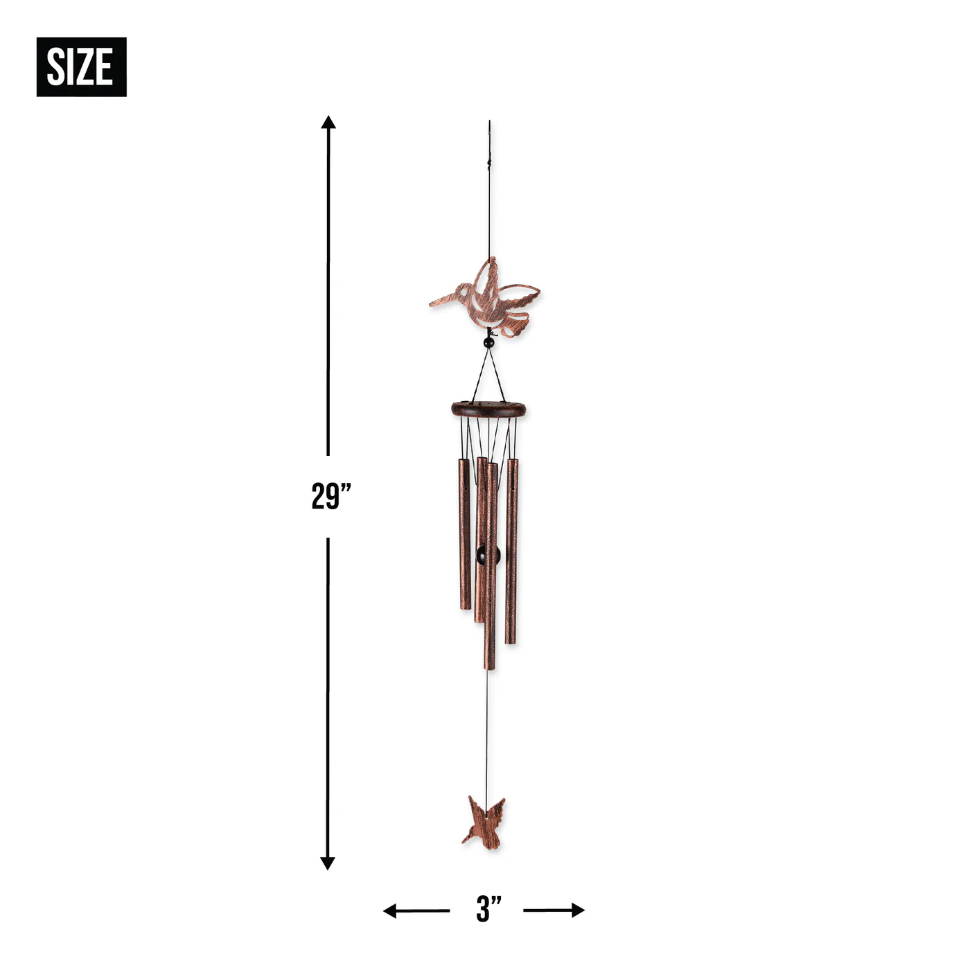 • The wind chimes weighs 0.4 lbs. and measures 3x3x29 inches.