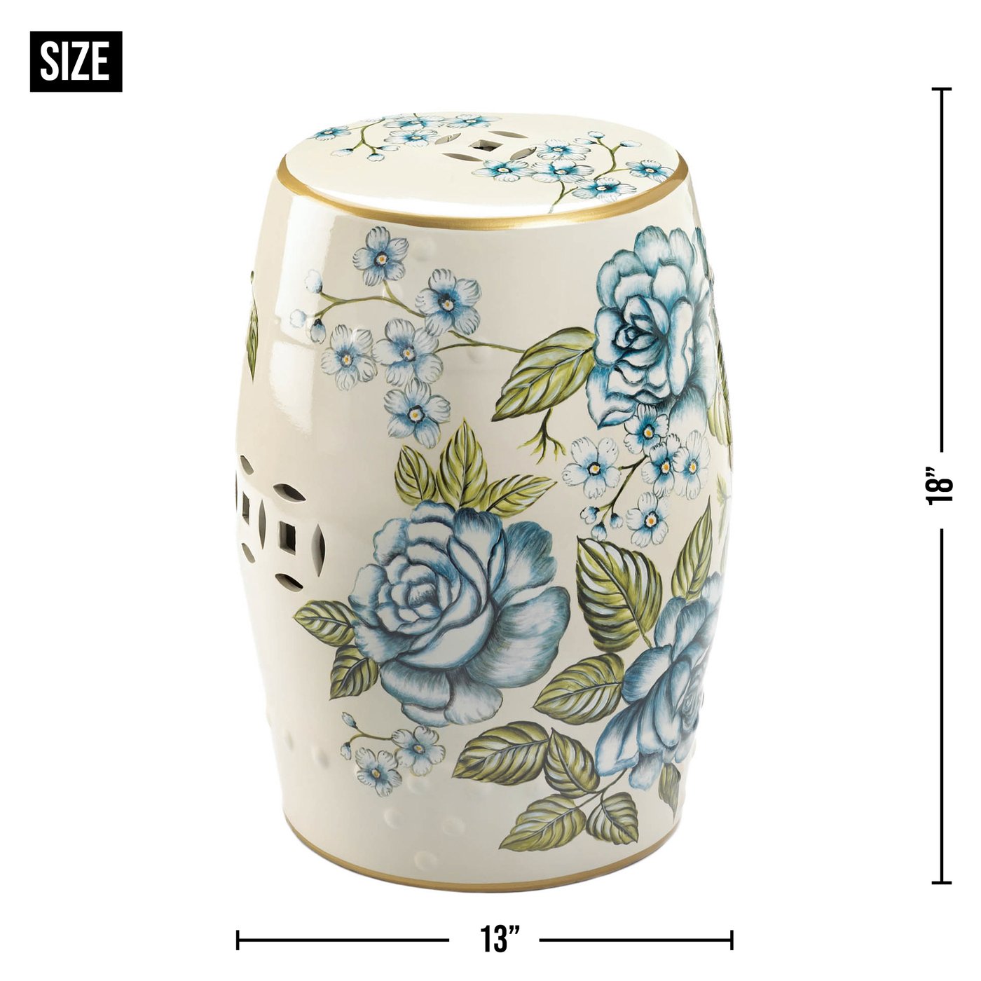 • Beautiful floral stool weighs 17.0 lbs. and measures 13 inches by 13 inches by 18 inches.